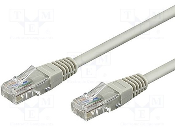Kabel Patch Cord 2 x RJ45. Osłony z odciążkami i z zabezpieczeniem przed załamaniem. Kategoria 5e. Ekranowanie: U/UTP. Budowa: 4 x 2 AWG 26/7, skrętka. Długość kabla wynosi 1 metr. Konfiguracja: 1:1. Osłona: PCW.